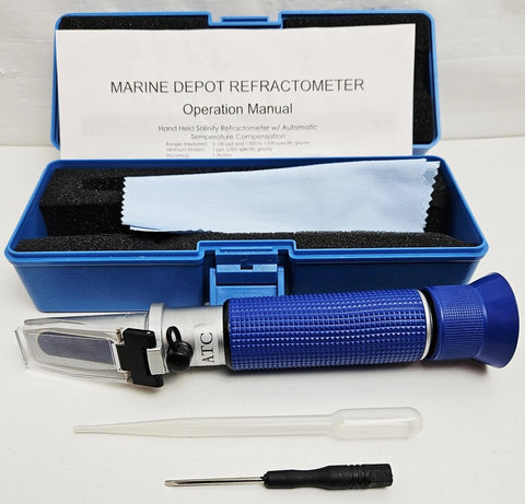 The Marine Depot Pro Refractometer is a high-precision, handheld tool designed specifically for saltwater aquariums and reads Natural Sea Water, featuring a focused, expanded scale (1.015-1.030 specific gravity) for easier reading compared to standard models. It includes Automatic Temperature Compensation (ATC) and a durable construction, making it ideal for monitoring reef tank salinity with greater accuracy than hydrometers.